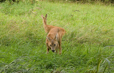 Jakoś tak mi się skojarzyła tą wizyta z francuską komedią 'Les Visiteurs’ z Jeanem Reno. Moi goście aż nazbyt często wpadają do ogrodu i częstują się czym da. Chyba ostra zima dała się sarnom nieźle w kość, bo jest ich tego lata jakby mniej. Za to rośnie młode pokolenie…