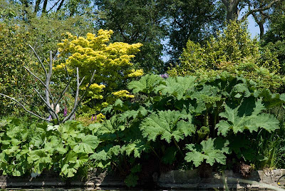 Mnie w ogrodzie RHS uderzyło jak zwykle to samo co w reszcie angielskich ogrodów – niezwykłe, czasem zupełnie zaskakujące zestawienia roślin. Odnoszę wrażenie, że Anglicy nie lubią pstrokacizny, mało tu roślin o kolorowych liściach, rabaty są bardzo wyważone i stonowane, czyli takie jak lubię. Sadzi się stare, sprawdzone odmiany, chociaż i tych nowszych nie brak. Wielowiekowa tradycja ogrodnicza i bardzo dobrze rozwinięty rynek roślin chyba pozwala Brytyjczykom podchodzić ze stoickim spokojem do wszelakich nowości. Chyba w każdym z oglądanych ogrodów widziałam brunerę 'Jack Frost’, innych jakoś nie… To znak, ze ta odmiana zasługuje na szczególną uwagę, jest mocna i wartościowa. W końcu najlepsi angielscy ogrodnicy nie mogą się mylić. Hyde Hall to nie tylko kolekcja krzewów i drzew (tutaj znajduje się narodowa kolekcja z rodzaju Viburnum) ale to przede wszystkim wspaniale skomponowane ogrody i całkiem spora ilość bylin począwszy od nowozelandzkich piękności a skończywszy na takich, które z powodzeniem można uprawiać w Polsce.
