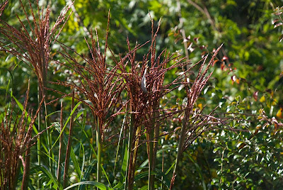 Dla mnie ’Rotsilber’ jest jedną z piękniejszych odmian miskanta chińskiego. Mam go już od kilku lat i zdążył mimo dzielenia utworzyć sporą kępę. Ta odmiana ma intensywnie burgundowe kwiatostany, z czasem rudziejące by na koniec pokryć się delikatnym puchem. Jest wysoki, z kwiatostanami osiąga ponad 2 m wysokości. Chyba tylko w większych kępach miskanty naprawdę potrafią zachwycić, ten co rok niezmiennie wprawia mnie w dobry nastrój jesienią. W moim ogrodzie o tej porze słońce jest tylko do godziny 11 – 12 w południe, potem chowa się za drzewami i niewiele roślin chce kwitnąć w takich warunkach. Szukam więc takich które mają piękny liście lub kwiatostany, owoce lub ładnie wybarwiające się liście. Powoli muszę niestety rezygnować z wielu jesiennych bylin. Trawy a miskanty szczególnie świetnie wpisują się w taką konwencję ogrodu.