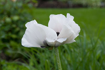 Ja ciągle nie odkryłam sekretu angielskich ogrodników, mianowicie nie mam pojęcia jak to robią że łodygi maków orientalnych stoją sztywno. U mnie maki często się pokładają. Trzeba też wspomnieć, że maki te mają w zwyczaju zanikanie całych pędów i liści po kwitnieniu. W naturalnym środowisku pomaga im to przetrwać suszę. Potem, gdy dni są krótsze, chłodniejsze i deszczowe maki wypuszczają z rozety nowe liście. Ta informacja jest ważna gdy będziemy je próbować zestawiać z innymi roślinami. I chociaż przepięknie wyglądają w towarzystwie ostróżek i wysokich czosnków, to jednak po jakimś czasie takie miejsce będzie świecić pustkami. Lepiej posadzić je z bylinami o bujniejszym listowiu, jak chociażby irysami, liliowcami czy piwoniami. Dobrze pasują do róż:)