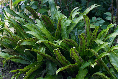 Phyllitis scolopendrium (syn. Asplenium scolopendrium, Scolopendrium vulgare) – języcznik zwyczajny jest naszą rodzimą paprocią. W Polsce w naturze w występuję już niezwykle rzadko na południu kraju. Ma wspaniałe liście, które kształtem przypominają języki. Liście są sztywne, skórzaste, niezwykle błyszczące. Moim zdaniem jest jedną z najpiękniejszych rodzimych paproci. Wymaga półcienistego miejsca, wilgotnej (chociaż dobrze znosi okresową suszę) i zasadowej gleby, nie znosi gleb ciężkich, zalewanych. Ja języczniki uwielbiam, nie da się ukryć że jest to mój ukochany gatunek paproci. W ogrodzie mam kilkanaście sztuk i do tego jeszcze odmiany. Wiem też, że to nie koniec:) Swoim języcznikom przygotowywałam specjalnie stanowiska, jako drenaż dostawały grys zmieszany z piaskiem i odkwaszonym torfem plus kompost z liści bukowych. Chyba im to służy bo rosną bardzo ładnie i co rok są większe. Podobno znoszą susze całkiem nieźle, jednak źle reagują na przesadzanie i dzielenie o czym przypadkiem przekonałam się na własnym egzemplarzu rok temu. Bardzo długo potem się regenerował. Marzy mi się, że kiedyś w ogrodzie spontanicznie pojawią się siewki tej paproci.