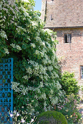 Ogród Vity Sackville – West znów wprowadził mnie w zdumienie. Mimo podziałów, ogromnej ilości i różnorodności roślin tworzy on jednolitą całość. Zwiedzając ten ogród ma się wrażenie, że przechodzi się z jednego pokoju do drugiego i każdy z nich zasługuję na uwagę. Oprócz zapachu róż czuć tutaj niezwykły smak i geniusz głównej projektantki. Ogrody Sissinghurst potrafią zaczarować każdego, zwłaszcza w czerwcu gdy rabaty kipią bylinami a krzewy różane w całości obsypane są kwiatami. Przy wejściu zachwyciła mnie hortensja pnąca porastająca jeden ze starych murów.