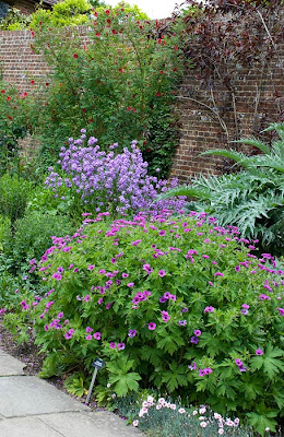 Rośliny na rabatach sadzi się piętrowo, według dość prostego na pozór klucza – z tyłu wyższe, z przodu niższe. Dobiera się je oczywiście według terminu kwitnienia, koloru, kształtów, faktury liści. Angielskie rabaty są piękne przez cały sezon wegetacyjny, wyglądają jakby rośliny same się tam wysiały. To jednak pozory. Aby uzyskać taki ideał potrzebny jest ogrom wiedzy, pracy i doświadczenia wielu pokoleń ogrodników. Byliny się podpiera, przycina, eksponuje te które są w danym momencie w najlepszym dla siebie okresie. Wprawdzie łagodny klimat ma tutaj ogromne znaczenie bo dzięki niemu można uprawiać szeroki wachlarz roślin, ale jak napisałam te rabaty to przede wszystkim dzieło wielu pokoleń ogrodników, wiedzy przekazywanej od lat. Rośliny, chociaż grają tutaj główną rolę są jednak tylko jakimś elementem całej tej ogrodowej układanki. Dobiera się je do miejsca a nie odwrotnie.