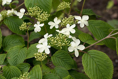 O kalinach japońskich pisałam już tutaj. ’Mariesii’ niewiele różni się od poprzednio opisanej ’St.Keverne’, jej liście są po prostu jaśniejsze, kwiaty prawie identyczne, sam krzew jednak docelowo ma być znacznie szerszy. Mam wrażenie że ta odmiana rośnie równolegle do gruntu. Ma piękny pagodowy pokrój, ale na wysokośc raczej niewiele jej przybywa.